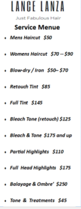 Prices for Palm Springs Hairdresser Salon